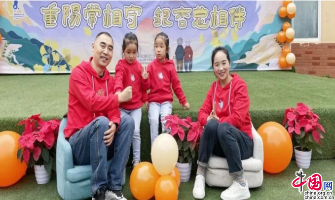 银杏娃和爸爸妈妈们生动的表演,展现重阳节的传统习俗:喝菊花酒、插茱萸、品重阳糕。