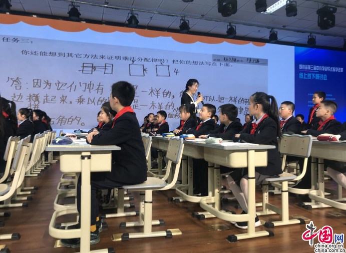 由该校承办的2020年四川省中小学自导式教学结构改革网络研讨活动通过网络平台,面向全省中小学72所自导式教学结构改革项目学校,在线研讨达2万人次。今年5月,“国家级信息化教学实验区”教学研讨会小学分会在极投小学召开。该校数学教师刘波以《又见乘法分配律》为题以课前、课中、课后的三段式课程设置,呈现出一堂“三段九环”的自导式教学课例。“自导式课堂打破了传统课堂教与学的模式,实现了孩子们的自主学习和个性化学习。”刘波说。