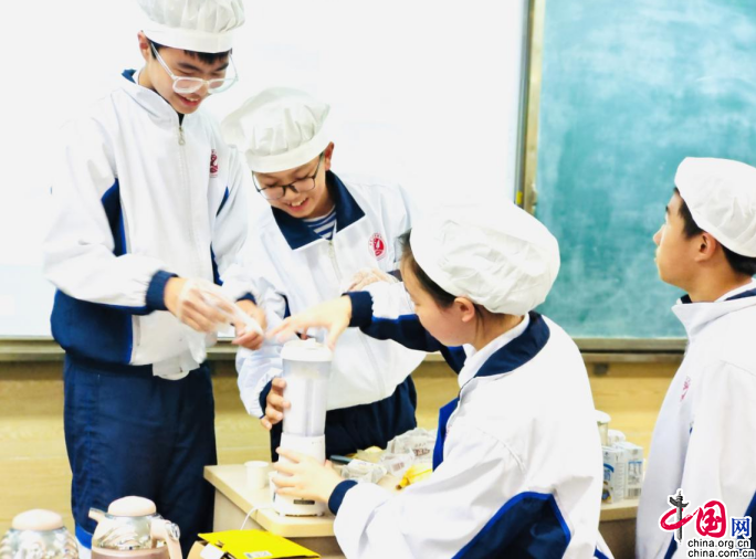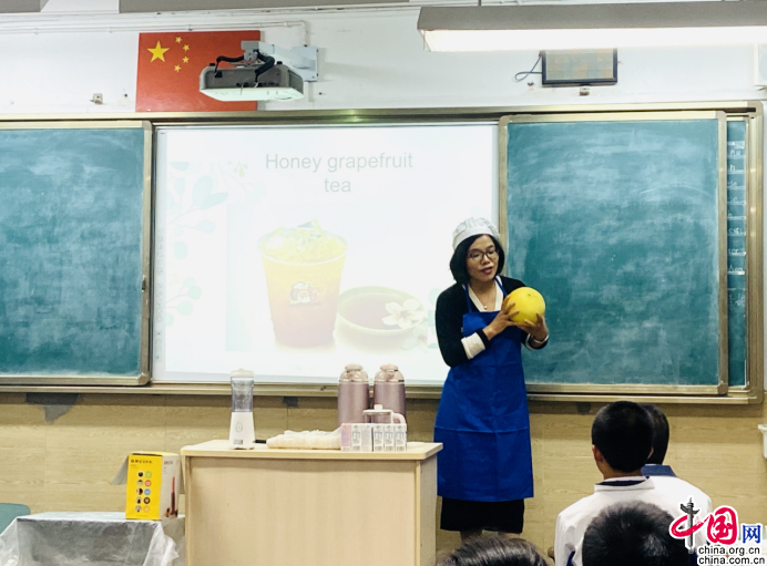 体验课上制作两种饮品 学子在“双语”文化的沁润下获取新知