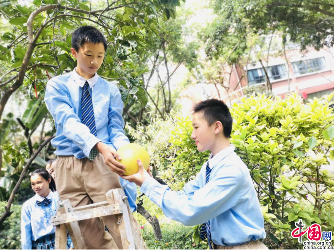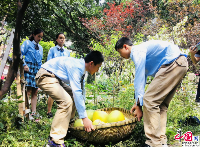 中国网10月21日讯(王李科)象征着丰收的金秋十月,迎来瓜果飘香。红彤彤的苹果、黄橙橙的梨……陈列在大大小小的水果市场五颜六色的水果,散发着属于自己的那一缕缕诱人的香味。你可曾想到,在成都的一所小学校园里也飘荡着一种水果的清香——以味道清甜、营养丰富而著称的柚子于这个丰收的季节在成都双语实验学校迎来了“瓜熟蒂落”。
