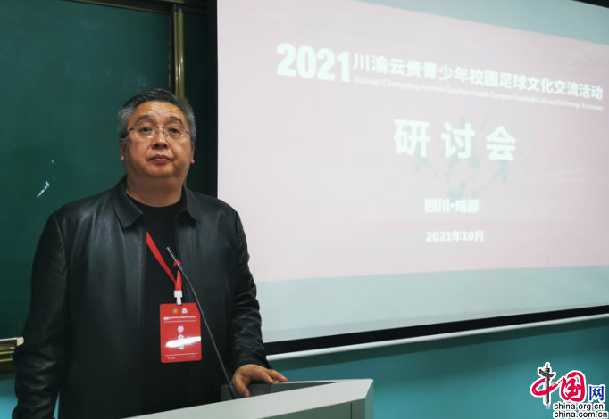 中国网10月26日讯(辜丽茜)10月24日,首届川渝云贵青少年校园足球文化交流活动在成都体育学院拉开序幕,来自川渝云贵四地的校足办、专家委员会委员、各高校代表队等齐聚一堂,共同研讨青少年校园足球工作开展经验。成都市青羊实验中学附属小学校长张胜就学校校园足球工作作了交流。