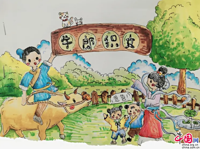 同学们学习民间故事的主题单元后,通过选择最喜欢的故事情节进行绘画,并配上文字。大家你一幅,我一幅,天枢星版《牛郎织女》的连环画问世了,该作品完整讲述了《牛郎织女》的故事,也让同学们感受到了传统文化的魅力。
