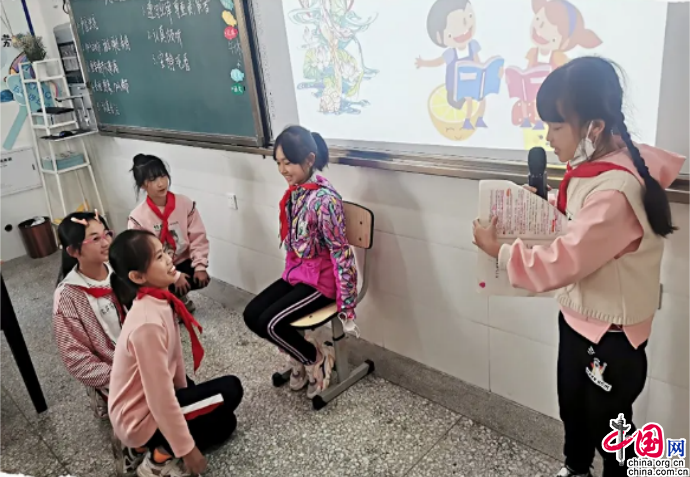 中国网10月27日讯(黄梅兰)为了全面实现课外阅读课程化,指导学生科学合理地学会阅读,提高自主阅读、独立阅读能力,养成良好的阅读习惯。近日,成都市沙堰小学天枢中队结合五年级的“快乐读书吧”举行了一场妙趣横生的民间故事专题活动。