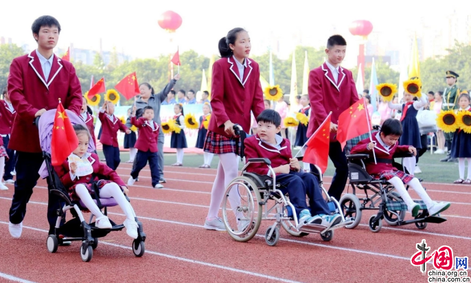 中国网11月5日讯(王李科)“少年智则中国智,少年强则中国强。”100年前,一代大家梁启超在其《少年中国说》中以笔疾呼国人以少年之朝气蓬勃精神,厉洗社会之沉疴旧习。100年后,青少年的身心健康、体魄强健则已成为一个国家综合实力的重要体现和社会文明进步的重要标志。这其中,残疾青少年的身心健康成为全社会积极关注的重点,如何组织和开展好残疾青少年体育教育,使他们作为独立的个体融入社会,实现生命的价值,则成为了社会营造和谐文明进步的“价值内核”的重要标尺。成都市新都区特殊教育学校(以下简称新都特校),正是通过以“文明其精神、野蛮其体魄”的教育方法,通过体育训练让学生实现强体魄,让一个个折翼天使绽放出灿烂的笑容,让一群可爱的孩子重拾起生活的信心。