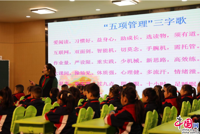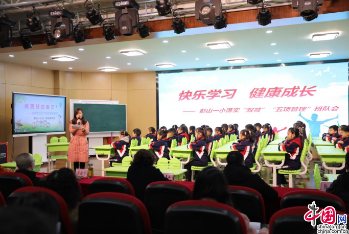 中国网11月12日讯 11月9日,眉山市彭山区第一小学演播室里气氛热烈,朗朗读书声响彻云霄,夹杂着阵阵掌声和欢呼声,主题为“快乐学习,健康成长”的“双减”“五项管理”主题活动正在火热进行中。整个活动共有4个环节。