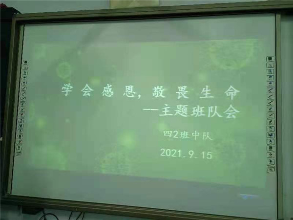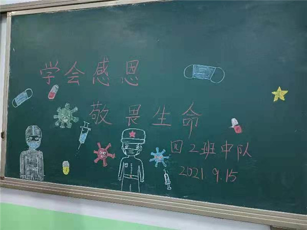 肖敏老师带领的四(2)班中队开展了“学会感恩,敬畏生命”主题班队会。老师以视频导入主题后,第一小队向同学们介绍了什么是新冠病毒以及它的传播方式等内容;第二小队向大家分享了自己收集的抗疫英雄事迹,包括中国工程院院士钟南山、火神山医院建筑工人王伟等;第三小队代表全班向抗疫英雄表达感谢;第四小队向大家介绍了如何预防新冠病毒,由学生上台展示如何正确洗手、佩戴口罩。班队会的最后,全班共同宣誓要共克疫情。希望大家珍惜现在的学习机会,做好自己该做的事情,和防疫前线的英雄们一起努力,共渡难关。