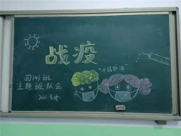 田丽慧老师带领的四(4)班扬帆起航中队的班队会主题是“战疫”。班队会的第一部分是“疫情小达人”,以提问的方式,让学生们自由回答。“面对疫情,我们可以做些什么?”同学们说出了自己对这个问题的看法。第二部分是“为逆行者点赞”,由搜集资料的同学们向大家分享逆行者故事。听了张定宇、王伟等逆行者的故事,在“疫情我想对你说”环节,孩子们纷纷表达了自己在这次疫情中的感受。孩子们说:“感谢这些英雄们的付出,因为他们,我们才会安稳的坐在教室里学习。所以我们一定要好好学习,将来也要为祖国贡献出自己的一份力量。”