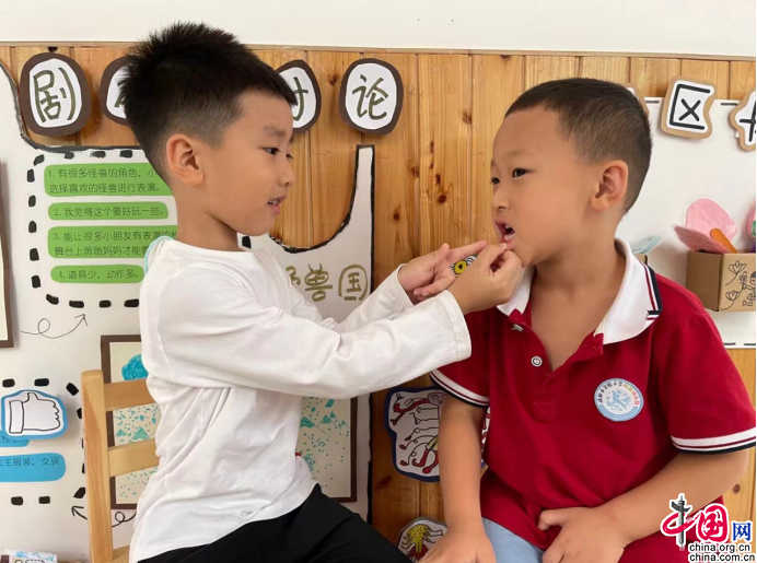 中国网12月6日讯(李小野)“开学时,佳佳告诉我她换牙啦!每次吃午餐也会小心翼翼地把饭吹凉,有点儿硬的水果也不吃了。有的幼儿会好奇的问她换牙是什么感觉;有的会说我也换牙了。”“换牙”成了班级里的热门话题,而这颗小小的牙齿就是话题的核心内容。针对这个“热门”话题,老师结合孩子换牙高峰时期,并充分利用孩子对牙齿的好奇心,激起了一场有趣的谈话活动,就这样“探索牙齿秘密”的热潮拉开了序幕……