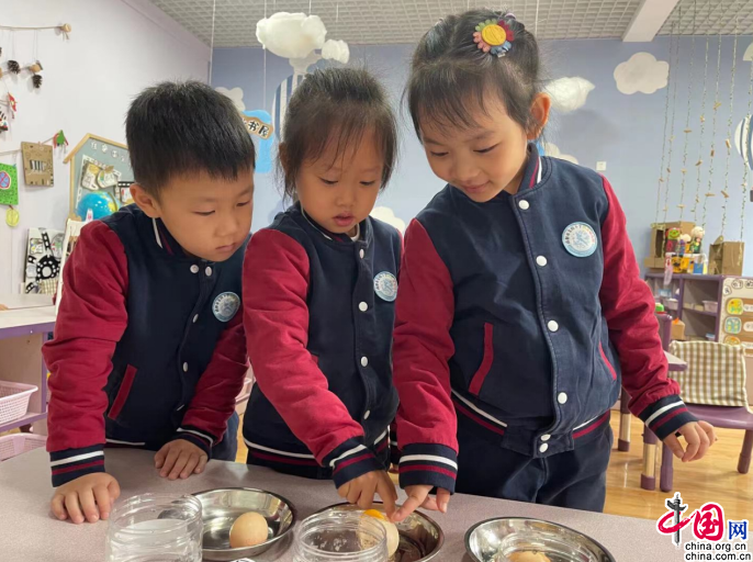 为了让孩子们更加明白牙齿的重要性,更懂得保护牙齿,老师带领孩子们用鸡蛋做了“蛀牙小实验”。实验中,通过孩子们的看一看、摸一摸、闻一闻,发现了泡在可乐里的鸡蛋颜色变得黑黑的,泡在白醋里的鸡蛋蛋壳变得软软的上面还有开裂的痕迹,泡在白水里的鸡蛋没有什么变化。从而让孩子们知道在生活中怎么保护牙齿。