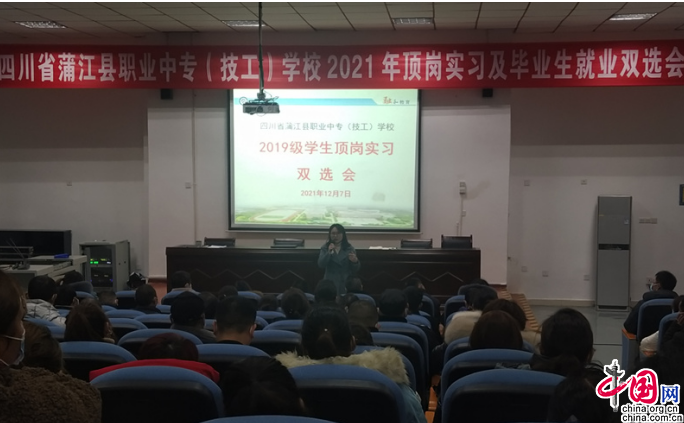 中国网12月9日讯(辜丽茜)切实做到为学生办实事,促进2019级学生的顶岗实习工作,为顶岗实习学生提供实践锻炼的平台和机会。12月7日,四川省蒲江县职业中专(技工)学校在做好测温、查码、消杀、登记等疫情防控工作相关要求下,举行了2019级学生顶岗实习双选会。