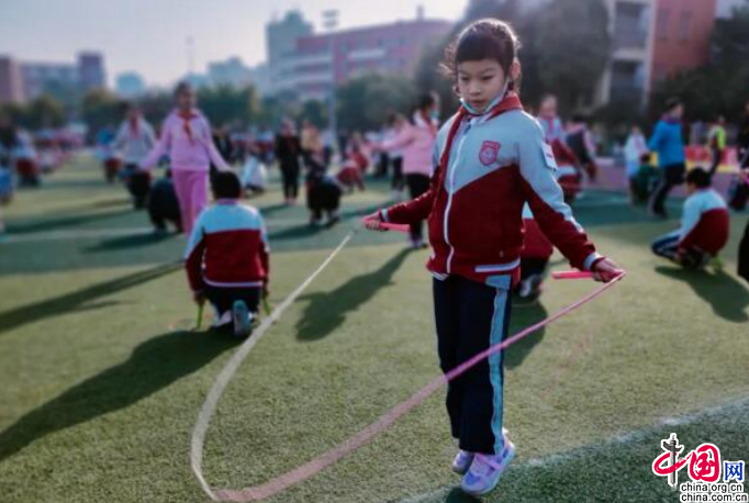 中国网12月10日讯(王李科)“我很喜欢运动,跳绳给我带来了很多快乐。”“我想通过学校开展的这场跳绳比赛展现出自己在跳绳方面的特长,我们都非常期待大运会的到来。”日前,在成都市海滨小学的操场上呈现出一片欢腾的景象,该校“爱成都 迎大运”成都市第八届全民健身运动会跳绳比赛总决赛的线上比赛举行,以此助力营造迎接大运会氛围。