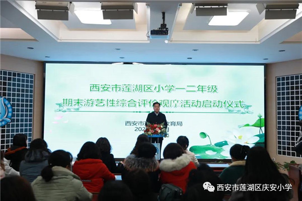 西安市莲湖区教育局党委书记、局长郭茜启动本次活动,宣布莲湖区小学一、二年级期末游艺性综合评价观摩活动正式开始!