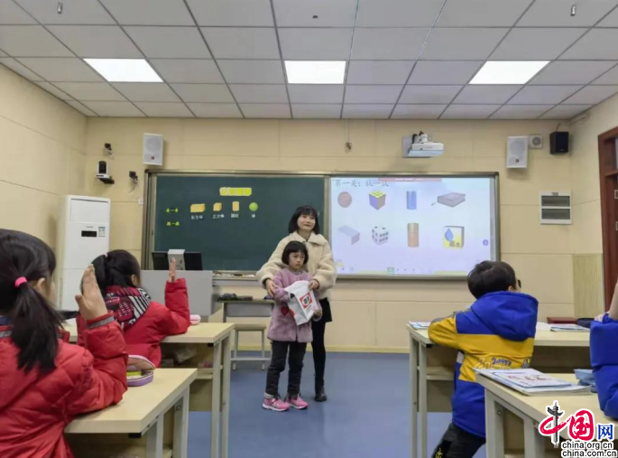 一年级徐丽老师执教《认识图形》,徐丽开门见山,以观察生活中的立体图形引入课题,引导学生关注身边的数学,让学生直观感知立体图形。通过看一看、分一分、摸一摸、玩一玩等活动,将课堂目标一一落实,使学生学在其中,乐在其中。从环节的设定到反复调试再到最终确定,徐丽老师从生活中选取了上百个立体图形的教具、学具……