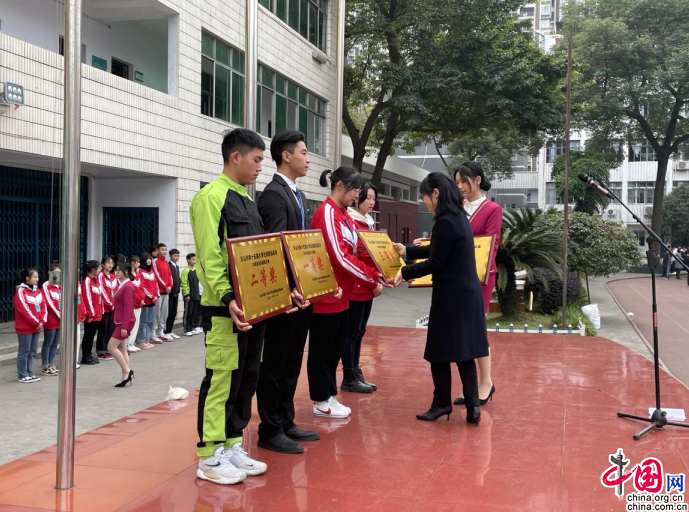 学校在参加乐山市第15届大学生消防运动会勇创佳绩,获得了油盆灭火竞赛一等奖、火场逃生技能接力赛二等奖、水枪穿梭接力赛三等奖、水桶传递穿梭接力赛三等奖。演练前,学校副校长范惠文、安全保卫科科长魏远志为获奖运动员颁奖。随后,魏远志对演练内容、程序作讲解和要求。