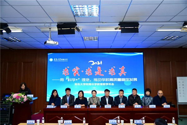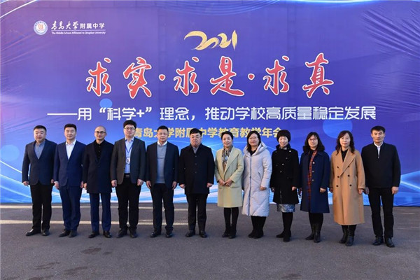 12月18日上午,青岛大学附属中学2021年教育教学年会在天山校区顺利召开,今年大会主题为《求实·求是·求真——用“科学+”理念,推动学校高质量稳定发展》,全体教职员工,部分学生代表、家长代表、集团领导参加会议。