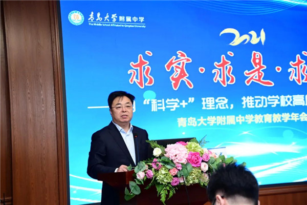 上午8点,2021教育教学年会启动仪式准时开始,青大附中副校长周元春主持会议,青大附中党总支书记、校长张凤瑛做了《求实·求是·求真--用“科学+”理念,推动学校高质量稳定发展》的主题发言。