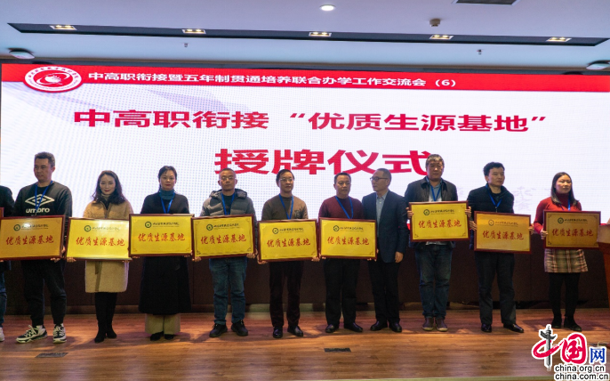 四川邮电职业技术学院党委副书记、校长冯远洪表示,中高职衔接和五年制贯通培养架起了中高职院校之间的沟通桥梁,成为资源共享、优势互补的绿色通道;该学院党委委员、副校长何志州介绍了近年来中高职衔接工作开展的情况;冯远洪为十二所优质生源基地授牌;晋明杰代表学校领取奖牌。