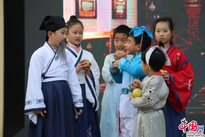第二篇章主题为《以德会友》。同学们通过演绎“孔融让梨”“程门立雪”两个经典故事,告诉同学们要学会孝亲敬老,懂得尊重,不要自私自利;为人子弟,在年少的时候就要亲近良师,结交益友,要从他们那里学习礼仪和知识。