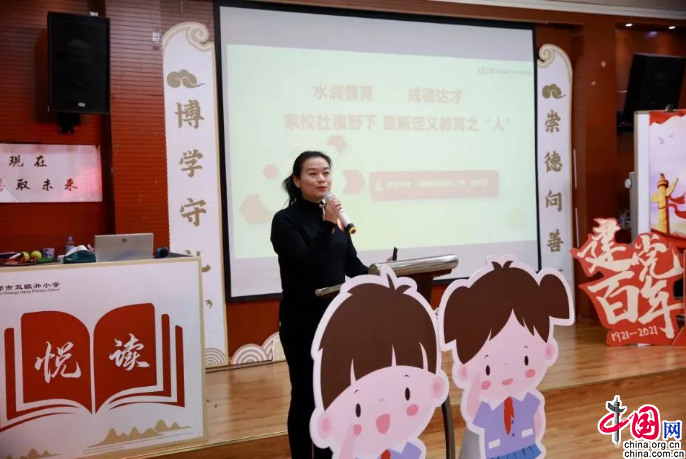 活动中,双眼井小学校长刘芳菲作了《水润善育,成德达才》的分享。传递顺应人、事、物本身之自然与规律,善育育善的“润善”教育理念,解读学校以清亮的教育目的,润泽的教育行为和灵动的教育路径而形成的“润善”思想,以此推动学校群体力量和优质教育生态。刘芳菲表示,“水润善育,成德达才”已经成为双小老师工作中不可分割的一部分,成为了老师们的一种信念。