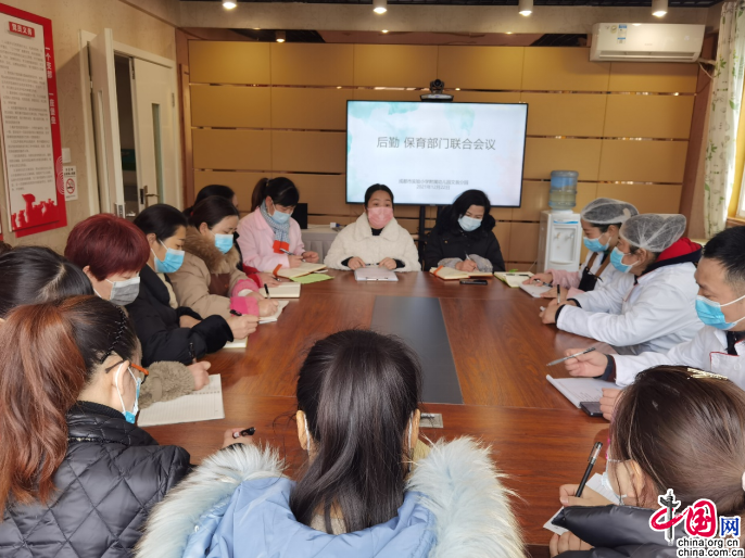 中国网12月23日讯(辜丽茜)幼儿园保育部门、后勤部门的工作关系到孩子的健康成长,保育员工作的开展离不开后勤工作人员的大力保障,同时后勤工作的开展也得力于保育员的配合支持。为加强保育部门与后勤部门之间的工作交流,促进各部门之间团结协作的能力。12月22日,成都市实验小学附属幼儿园文翁分园召开后勤部门、保育部门联合例会。后勤主任、保健医生、全体保育员、食堂人员参会。会议由保教主任杨晴主持。