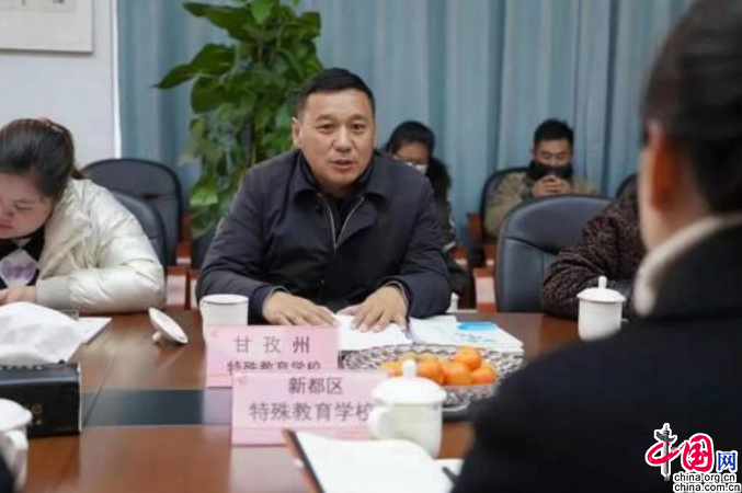 中国网12月23日讯(王李科)“葵影便移长至日,梅花先趁小寒开。”12月23日,记者从成都市新都区特殊教育学校(以下简称新都特校)了解到,冬至前后,甘孜州苟彬娟名师工作室、甘孜藏族自治州特殊教育学校(以下简称甘孜特校)校长泽仁朗吉带领二十名工作室成员一行走进新都特校进行了教师专业能力提升学习交流活动,借力共商共谋,共赴暖春。