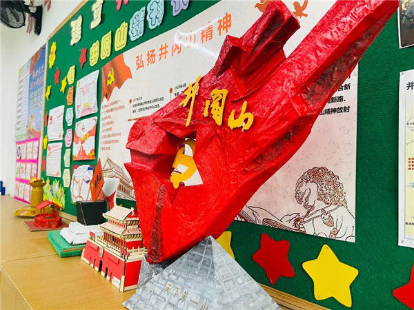 青岛李沧路小学“能工巧匠”刘天润,用纸壳、彩泥、木板,做成了一个“青岛党史馆”的模型,震撼了小伙伴,在她的带动下,由中队到大队,孩子们找资料、写标语、做手工、捐献家里党史文物,全校32个中队、每个教室,都有了一个孩子们自建的微型党史馆。从五四运动到两会召开, 一条走廊、32个故事、100年历史,是队员对党史学习的最佳“作业”。
