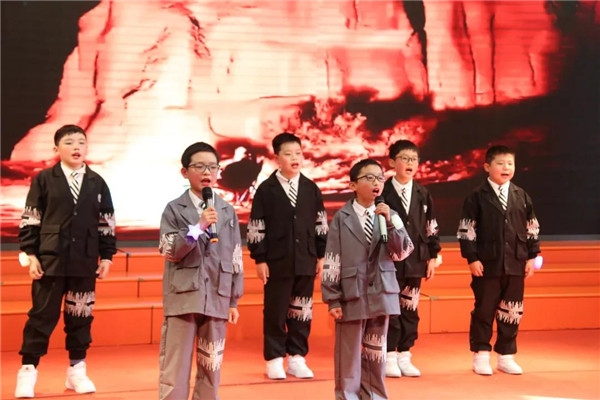 四2班男生为大家带来的表演唱《夜空中最亮的星》,他们以自己独特的光芒照亮身边的黑暗,照亮心中前进的方向。