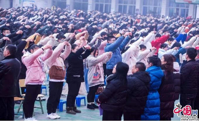 中国网1月10讯 近日,乐山市第一职业高级中学3000余名师生齐聚操场,举行了“践行十爱,德耀嘉州”团拜迎新文艺汇演。汇演由副校长李萍主持。