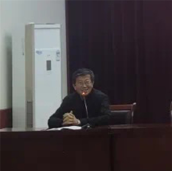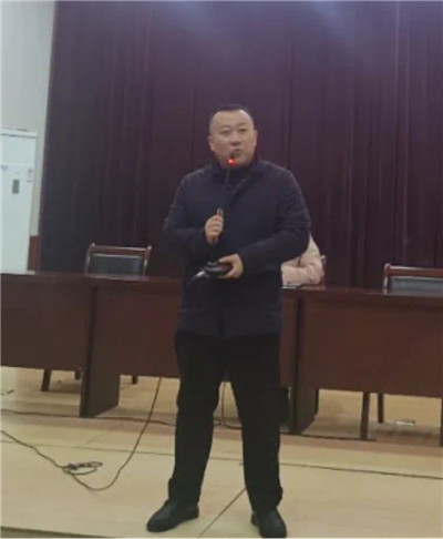 山西省临汾市县底中学校党支部书记赵登科讲到:感谢各位领导对我校工作的鼎力支持,他说“大师”比“大校”更高,愿县底中学的老师们能潜心钻研,争做“大师”,共创县底中学的辉煌。