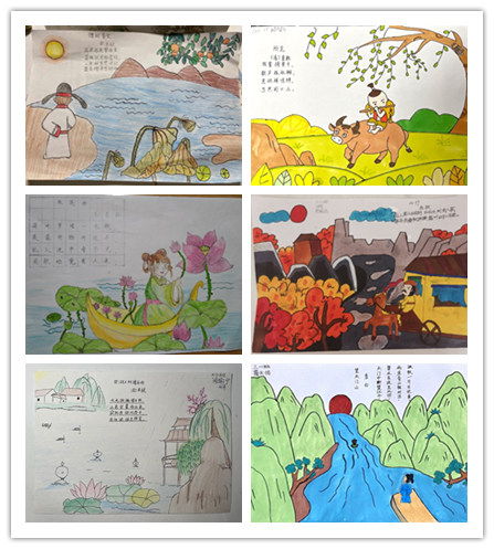 古人云:“诗中有画,画中有诗。”三年级的同学们选择了本学期所学的一首古诗,用图画的方式展示出来,诗、文字、图画结合在一起,让我们学过的古诗变得更有画面感。孩子们巧妙地将“学”与“思”结合起来,让学习变得更加有趣。