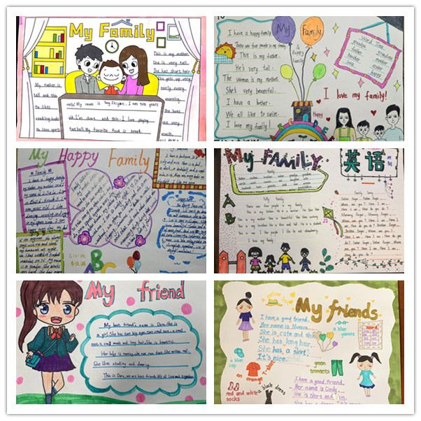 三年级的同学根据所学的“家人”和“朋友”的主题,绘制成了图文并茂的手抄报,他们学以致用,用所学知识介绍自己的家人或朋友,语言的综合运用能力得到了发展。