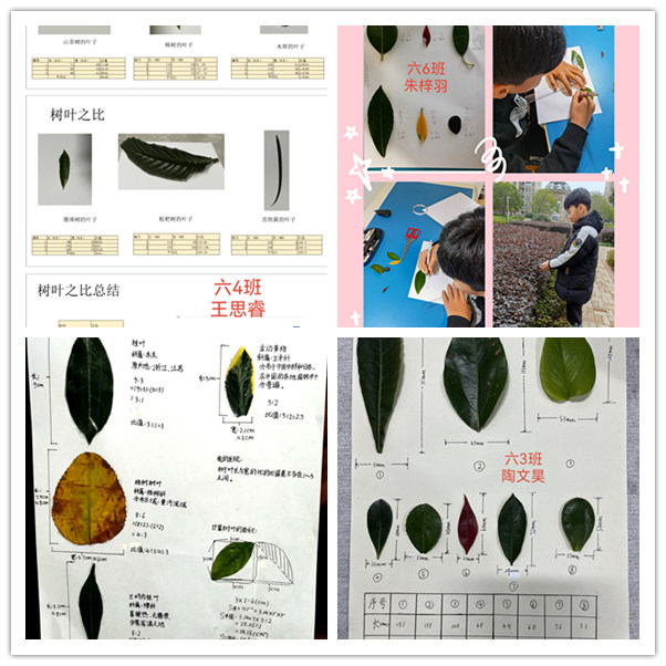 六年级学生从生活中搜集了各式各样的树叶,测量、计算出了树叶中最长部分与最短部分的比,结合本学期所学知识进行相关的研究。