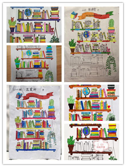 二年级的孩子们认识的字多了,一个个都是阅读小能手。他们把阅读的书目、积累的古诗绘制成“打卡小书架”,涂上了喜欢的颜色,记录下阅读的点点滴滴。