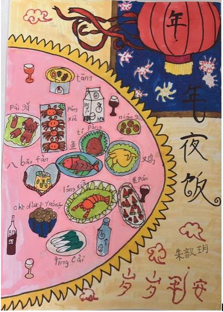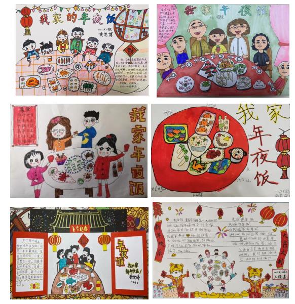 一年级的小朋友们以“我家年夜饭”为主题,结合生活实际,将“年夜饭”描绘出来。孩子们用稚嫩的文字、生动的画面记录了多彩的生活,让生活变得更加有趣。