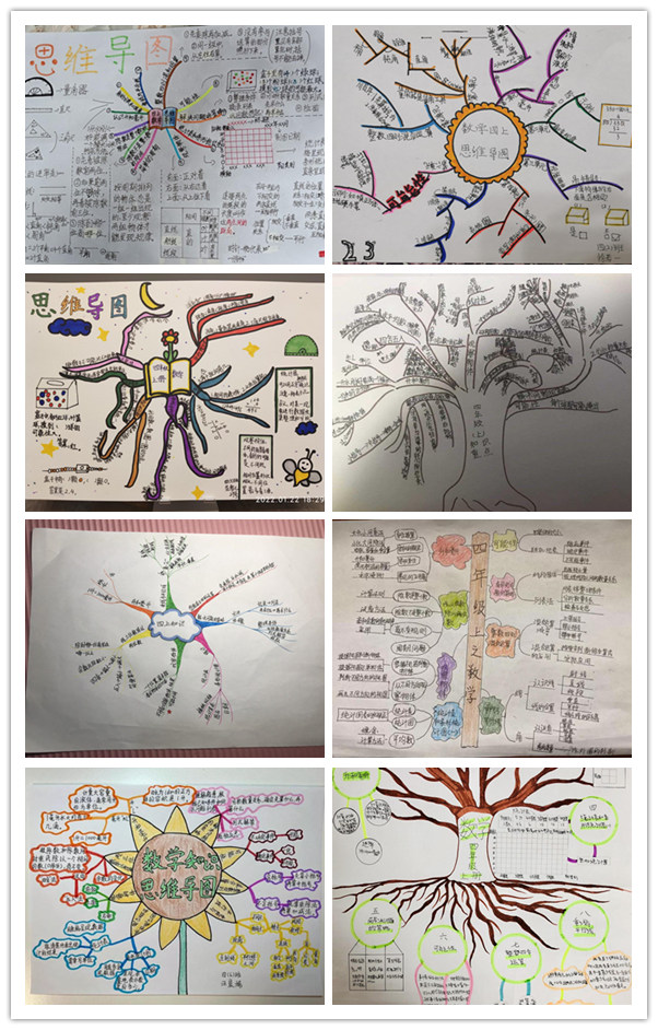 四年级学生把本学期的数学知识整理成了思维导图,既增强了学生的学习兴趣,又对整册知识有了更高层次的理解。