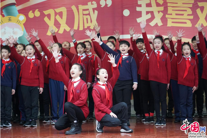 成都实验小学源雅校区2022年春季学期开学典礼以“‘双减’·我喜欢”为主题。在冉冉升起的五星红旗下,庄严的国歌声和铿锵的校训呼喊凝聚起了实小师生的精气神。校长李蓓为全校师生带来了殷殷嘱托:希望师生把热情洋溢、敢想敢干的良好状态一直延续,能担当、勤作为、求上进、有霸气,做好“自己的王”。通过深入解读“双减”政策,成都市实验小学从更高的站位、更宽的视野审视学生发展,赠予孩子们童年成长更多地“留白”。