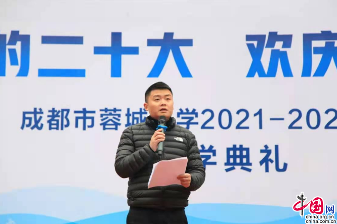 开学典礼在庄严肃穆的升旗仪式中拉开序幕,五星红旗冉冉升起。成都市蓉城小学校长曾宝兴以《喜迎党的二十大 欢庆冬奥助大运》为主题,在鲜艳的国旗下做了热情洋溢的新学期致辞。“‘一元复始,万象更新。’寂静了三十多天的校园,因为你们的回归又重拾往日的生机,充满了欢声笑语。今天,我们在这里隆重举行2021-2022学年度下期开学典礼,我谨代表学校向全体师生致以春天最美好的祝愿:祝愿同学们在新的学期快乐生活,开心学习,健康成长;祝愿老师们身体健康,家庭幸福,工作顺利!”曾宝兴向该校全体师生致以了新学期的问候与祝福,并指导学子们用实际行动迎接即将在成都举行的世界大学生运动会,做自信、文明、勤奋、灵动的成都人。“希望孩子们通过成为‘自信、自强、自立’的少年;做时间的主人;坚持体育锻炼,强身健体,为自己筑起坚固的免疫屏障;遵守纪律,做好防疫,注意安全,平安健康生活;与同学友好交往,尊敬老师,关注自身的心理健康,情绪状况,有困惑及时求助;做个热爱阅读的孩子,以此乐享童年,迎接未来。”