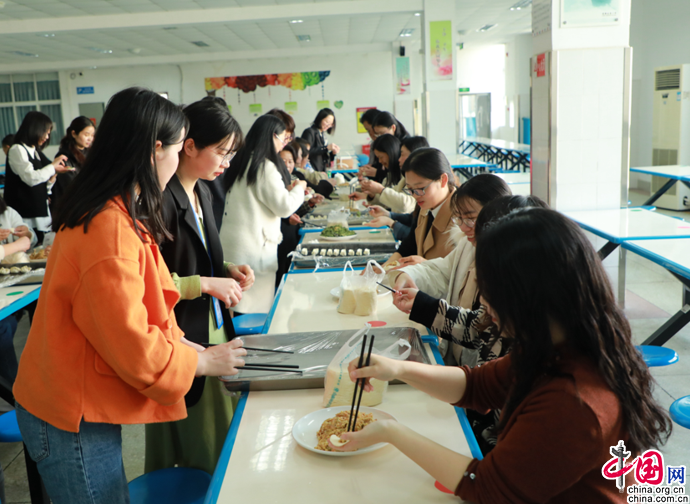 “来啦,来啦,香喷喷的饺子来啦!”3月8日,四川省成都市龙泉中学校在学校食堂举办了“饺动你我 自信美丽”庆“三八”国际劳动妇女节活动。红润的猪肉,翠绿的小葱,洁白的面团,在心灵手巧的女老师手中变成了色泽鲜亮,体态圆润的大饺子。此刻,上得讲台、下得厨房的女神们笑靥如花,让人不得不赞叹:“厉害了,我的女神。”“巾帼不让须眉,妇女能顶半边天,龙中的女教职工为龙中的发展,撑起了半边天。”工会主席、副校长石小强肯定了龙中女教职工的勤勉付出,祝全体女教职工节日快乐,并主持了龙泉中学“巾帼文明标兵”颁奖仪式。