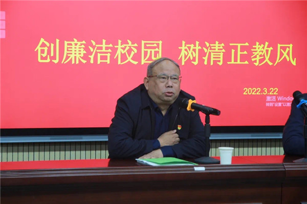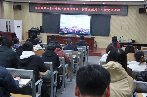 为认真落实山西省委、临汾市委关于全面推进清廉建设的部署要求,进一步加强学校党风廉政建设,不断增强党员干部教师廉洁自律意识,共同营造风清气正的良好文化氛围,山西省临汾市第一中心学校党支部于3月22日在南小阶梯教室召开了以“创廉洁校园 树清正教风”为主题的党员大会及主题党日活动。此次活动由临汾市第一中心学校专职副书记谭东明主持。