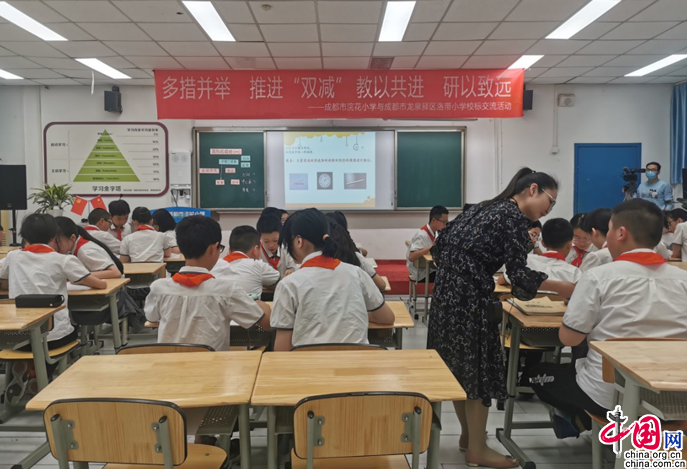 中国网3月24日讯(宋得恩)为全面深入落实“双减”工作要求,推动教育高质量发展,积极发挥课堂主阵地作用,不断探索“双减”背景下的课堂增效之路。近日,成都市龙泉驿区洛带小学校与成都市浣花小学校展开了区域间的校际交流活动,以共同促进“双减”政策的落实落地。