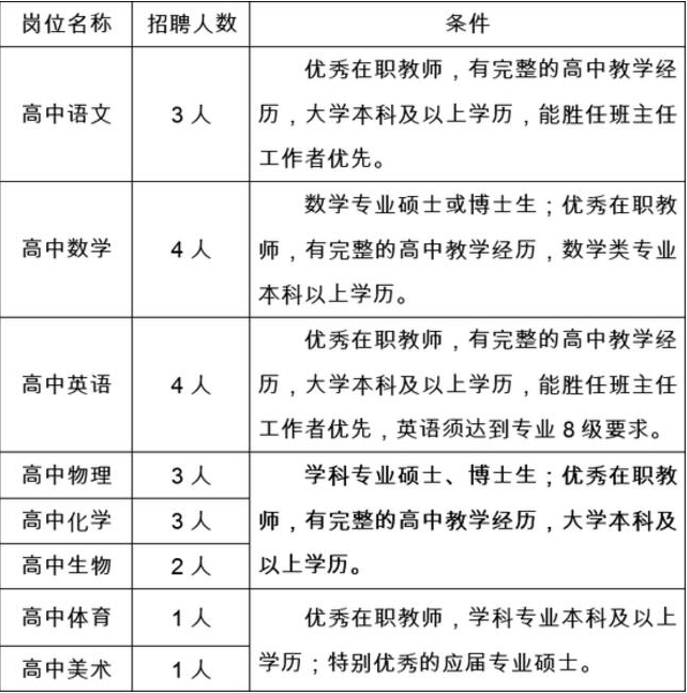 为了进一步充实高中教师队伍,实现高品质、卓越高中的办学目标,现面向全国引进高中优秀教师。