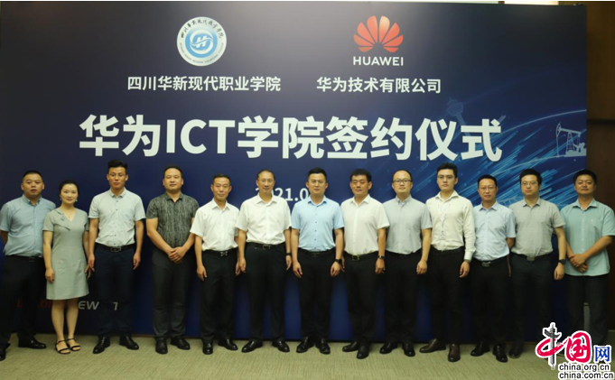 2021年7月15日,华新职院与华为技术有限公司正式签署校企合作协议,共建“华为信息技术产业学院”(即“华为ICT学院”)。ICT学院以对接华为生态圈为目标,秉承“对接产业,课证共生,注重实战,立德树人”的教学理念,将面向新一代信息及通信技术,与区域内华为生态行业企业、科研机构深度融合,培养具备较高职业技能,掌握一定前沿科技,有责任担当,有家国情怀,具有毕业证和华为企业认证的高素质技能型“双证毕业生”。
