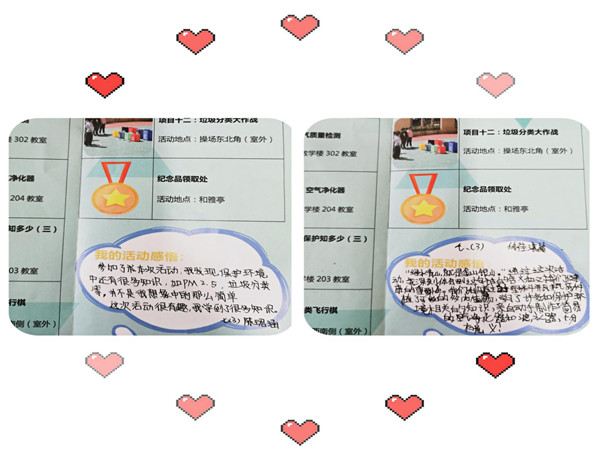 此次活动是为了引导师生共同环保,让大家拥有一双善于关注身边环境的眼睛、一颗时刻关注环境变化的心、一份传播环保观念的热情,用行动肩负起环保重任,做环保小卫士。初一初二全体学生在老师带领下,井然有序地参加了“空气质量检测”“DIY空气净化器”“垃圾造物”“神奇的净水器”“环保知识抢答““垃圾分类”等一系列实践活动。