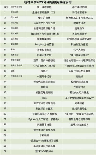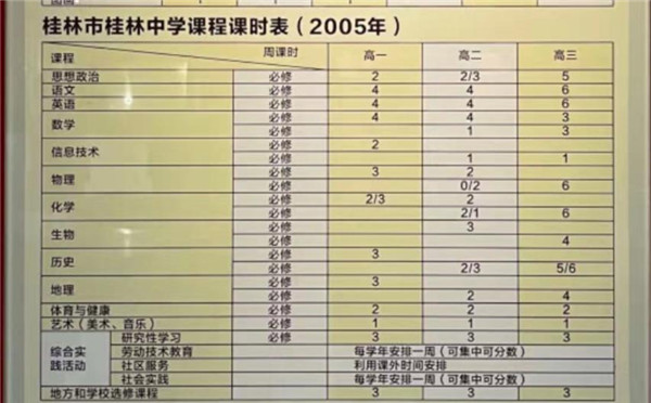 桂林中学的课程与时俱进,每张课表都能深刻的反映当时的时代背景。桂林中学的课程设置敢于创新,底层逻辑紧跟时代的脚步,使每位学子都能有不一样的体验。