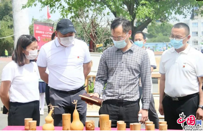 调研团成员按照相关防疫要求,完成登记、测温、扫码、出示行程码等程序后进入校园。在学生解说员的介绍下,调研团参观了学校展示区的灵龙美育名片·客家烙画,并在“落实‘双减’·作业设计”展区,了解了孩子们各类作业完成情况和图书阅读情况,参观了老师们的作业设计案例。