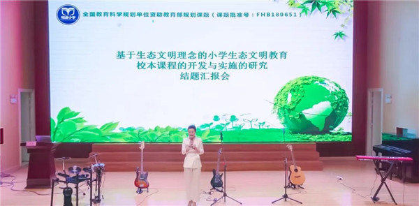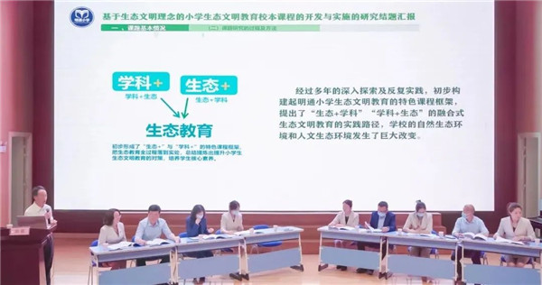 接下来,课题负责人、明通小学校长刘毅对于课程的开发与实施过程进行详细汇报。本次课程以生态教育学的理念与方法,将生态和教育自然地联系在一起。“此次课题不仅是一项荣誉,更是我们的责任。”刘毅校长表示生态文明教育融入小学教育,响应了国家政策与人类命运共同体的发展方向。