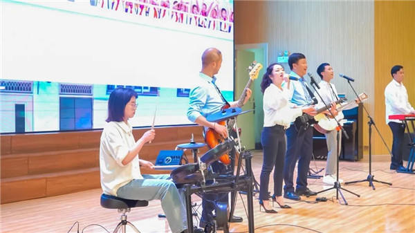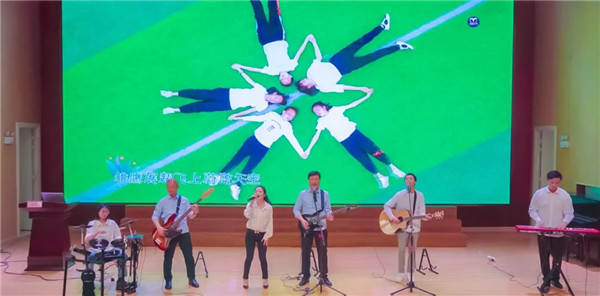 以杨坤副校长带领的电声乐队现场演奏校歌