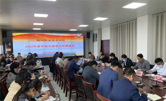 为切实做好2022届毕业生就业创业工作,宿州职业技术学院于4月13日召开2022年度毕业生就业工作推进会。学院党委书记连琦主持会议并讲话,党委副书记、院长陈东旭,党委副书记李玉峰,党政班子成员宋斌、赵素华、潘有棣、来景辉、李斌,招生就业办公室、教务处、学生处、各系部党政负责人、毕业班辅导员等参会。