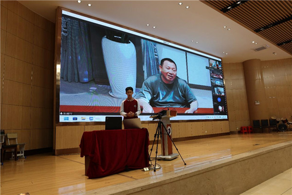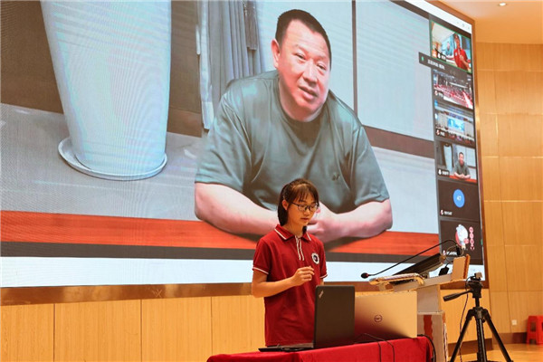 因疫情防控需要,见面会采取线上方式。活动开始,陈副书记介绍奖助金情况及杰出校友宋柳平的事迹,并衷心感谢宋校友提供的热心帮助。接着,校长马劲指出奖助金的设立展现了宋校友对母校的深情厚谊,践行了“专心志,忧天下”的桂中校训,希望获奖同学认真学习,培养能力,将来努力回报社会。