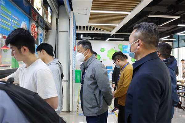在超市、水果店、食堂等场所,吴敏与正在购物、就餐的学生谈心交流,叮嘱他们做好个人防护,协调好学习与生活。